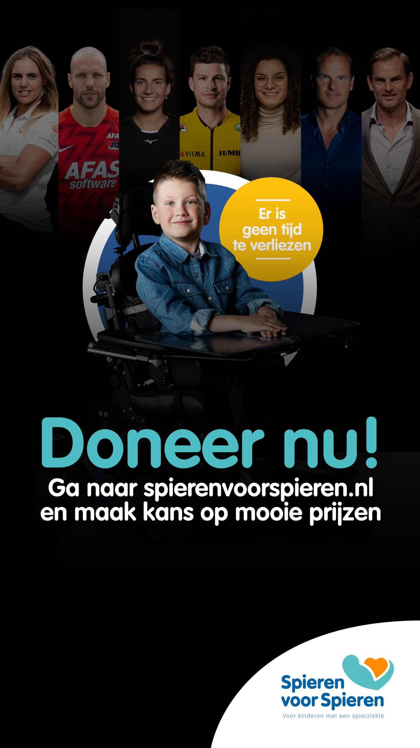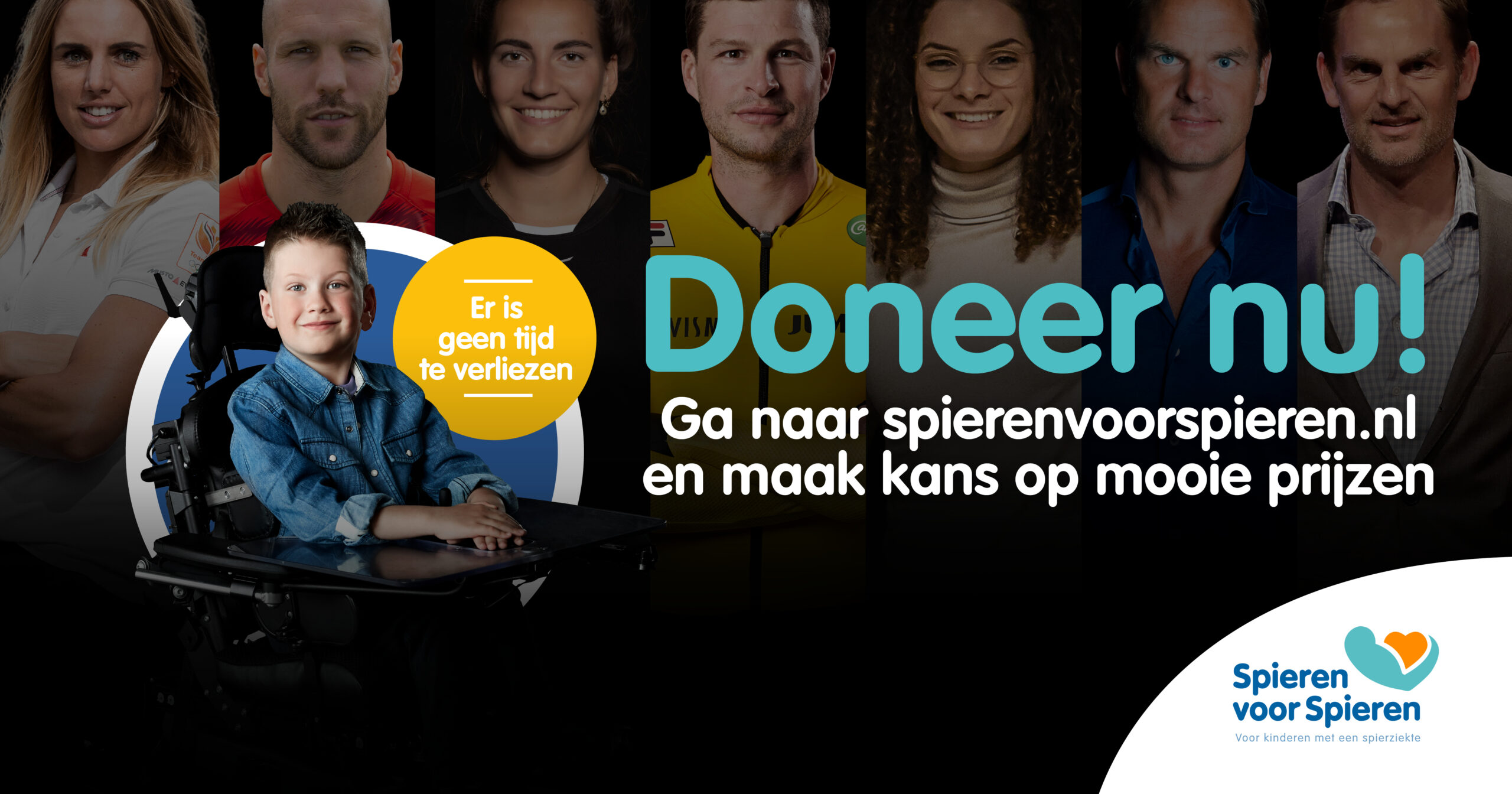 Doe mee aan de winactie voor de mooiste sportprijzen van bekende topsporters. En, krijg een deel van je inleg terug van ons! Wij steunen de nationale actie van Spieren voor Spieren van harte door bij te dragen aan jouw donatie. Je krijgt daarvoor 25% van je aankoop terug met de kortingscode Spieren25
